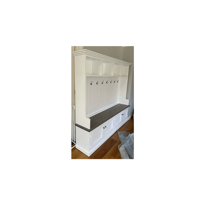 Custom made mudroom stand 2 tone, Height 2000 width 2200 depth 390