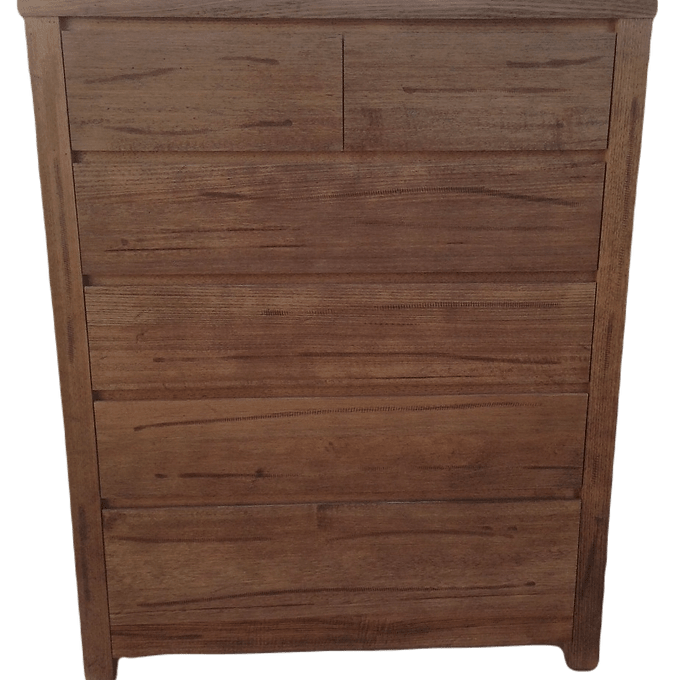 Jackie tallboy Tassie Oak – rustic finish. Stained in our selection of stains or colour match. Extension runners on all drawers. Matching Bedsides, Bed – Queen or King, Wardrobes also available. 6 Draw Tallboy displayed @ $1275 Lacquered