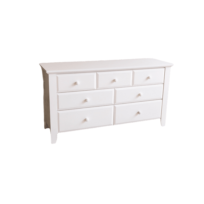 Manilla drawers wide chest solid timber and custom wood used in white. It can be stained either with our stains or colour match to your existing furniture. Australian made so we can custom the size if required. Product Displayed 1500W 7 DRAWER CHEST @ $899