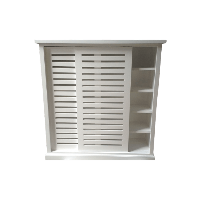 This Australian made shoe cabinet measures 900x900x450 deep. It comes with sliding, slatted doors. While this is a standard size, we can make them any size that you may require. We can also supply them stained in a choice of colours