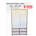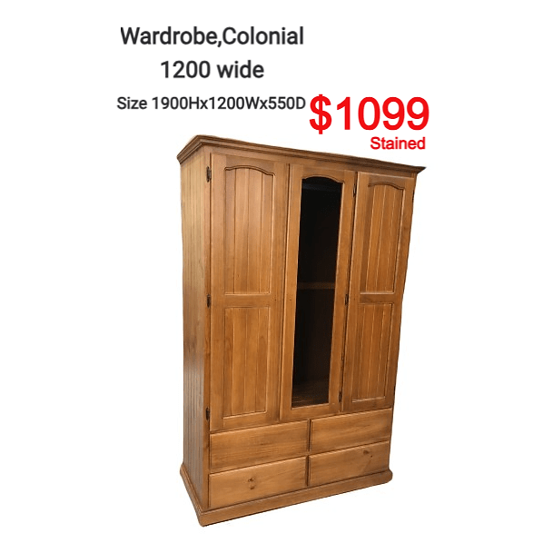 We have a variety of wardrobes which are 1200 wide. They come in the raw timber, fully assembled and ready to paint or stain in colours of your choice. Raw wardrobes start at $879 in a raw state.